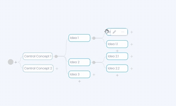2. Click on the + sign on the bottom of a group of nodes to add a sibling node